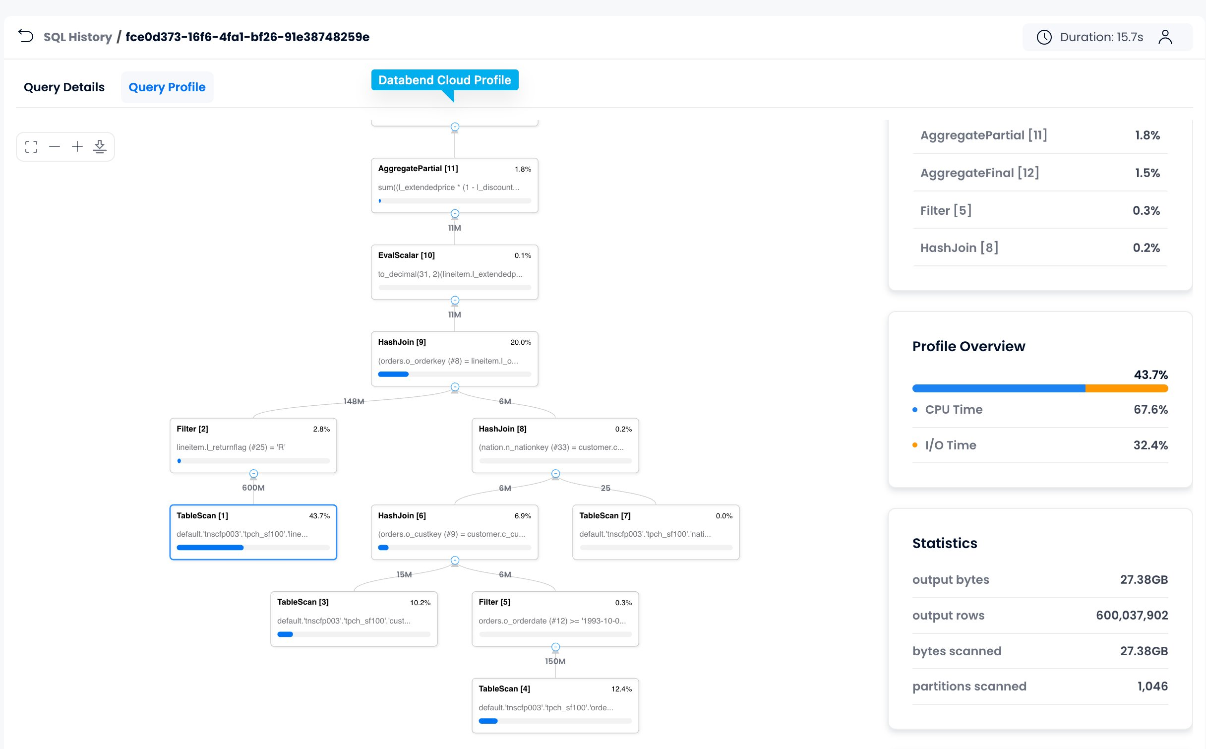 Databend Cloud 提供可视化分析工具以简化对复杂查询的剖析和理解。