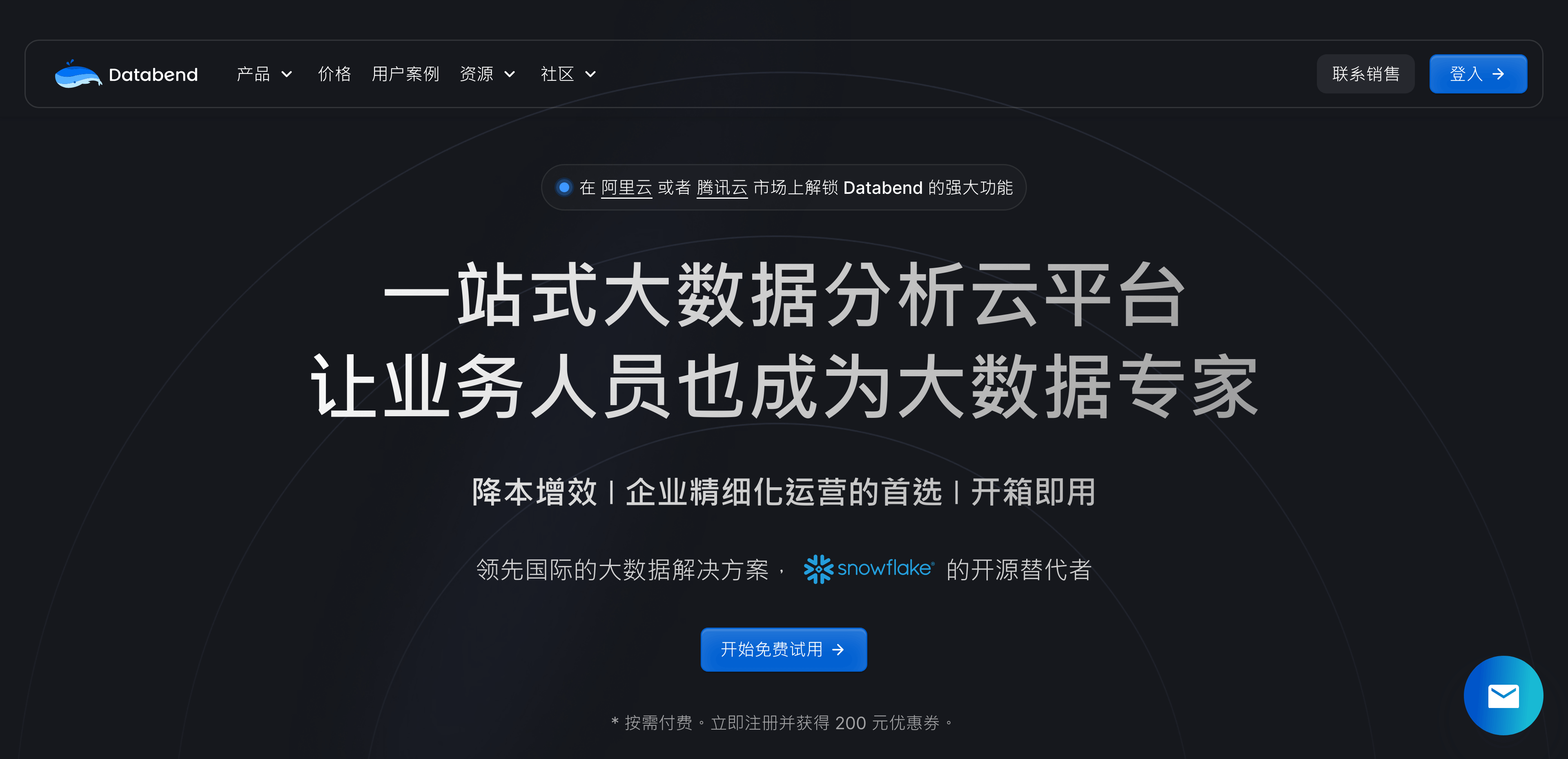 Databend 是一款现代云数仓。专为弹性和高效设计,为您的大规模分析需求保驾护航。自由且开源。即刻体验云服务:https://app.databend.cn 。