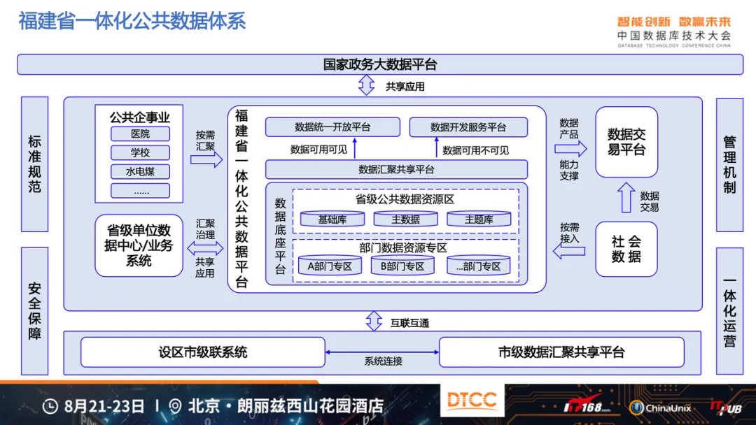 福建大数据一体化公共数据平台采用"1+1+3+1+N"的整体架构,其中数据汇聚共享平台作为核心枢纽,承担着横向对接全省各厅局系统、纵向连通国家与地市的重要职责。然而,随着接入部门从最初的几家扩展到 90 多家,传统架构的弊端逐渐显现。