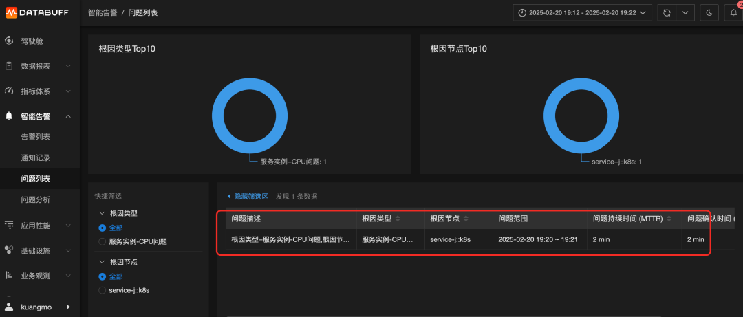 跳转到DataBuff平台后,即可查看到对应的故障信息。