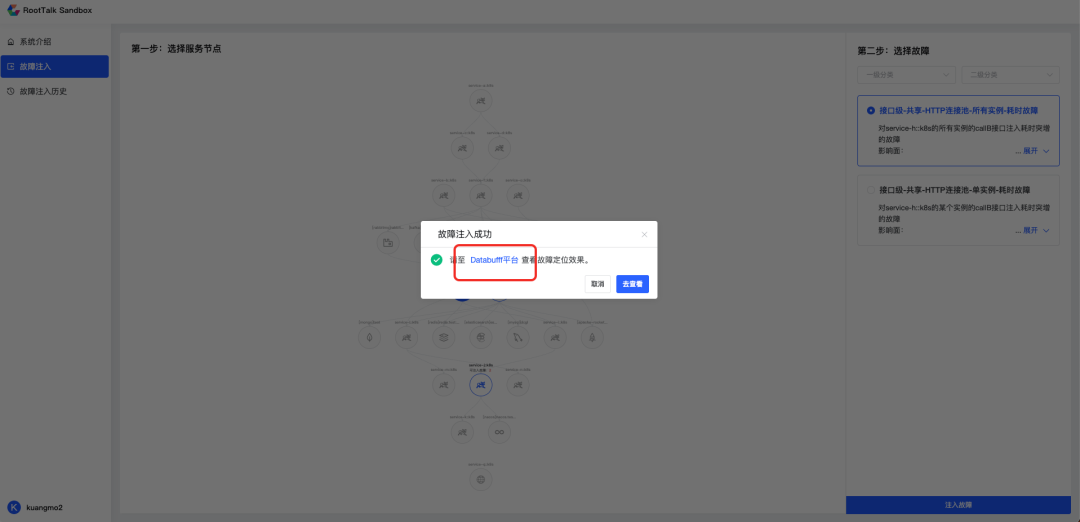 点击注入故障后,通常需要等待2到3分钟,然后会自动弹出DataBuff平台的查看地址,点击跳转即可自动查看DataBuff平台。