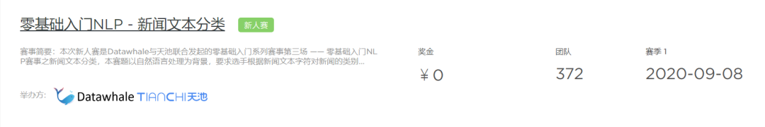 俗话说,读万卷书,行万里路。理论结合实践才是学习最好的方式,对于AI算法更是如此。天池NLP新闻文本分类入门学习赛,旨在引导大家走入自然语言处理的世界,带大家实践NLP的预处理、模型构建和模型训练等知识点。点击 阅读原文 了解更多详情。
