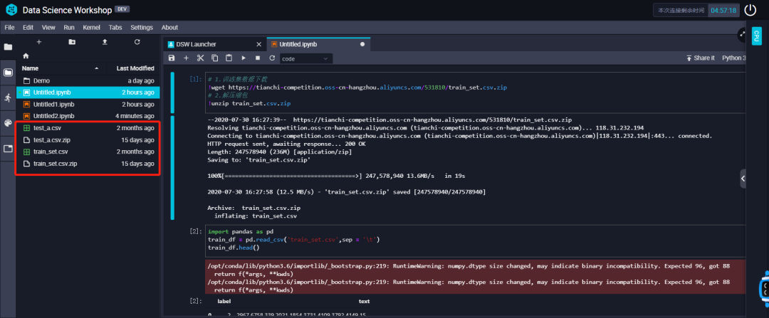 步骤3:基于DSW的NLP比赛数据获取方式: