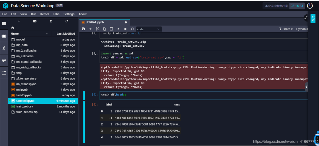 这样,就掌握了如何用阿里云DWS创建Notebook,便携代码和运⾏代码的整个流程。可以愉快地用数据进行模型的训练了~