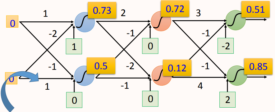 网络输入为(0, 0),激活函数为sigmoid: