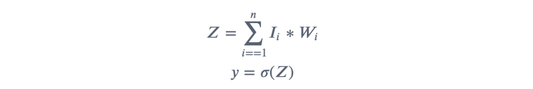每个输入乘以其对应的权重,将结果求和,得到????;