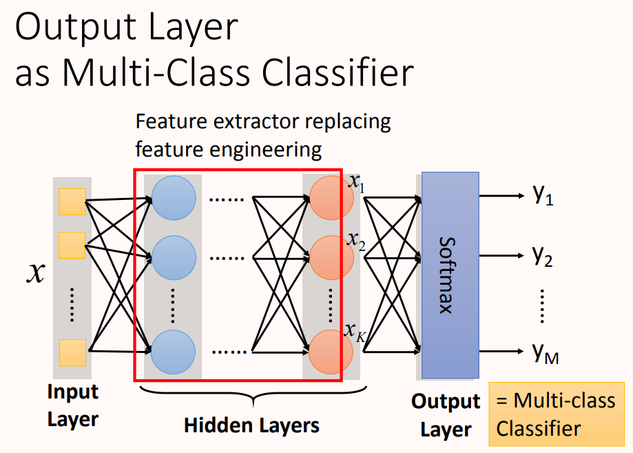 隐藏层可以看作是对网络输入层输入特征进行特征处理,在最后一层隐藏层进行输出,这时的输出可以看作一组全新的特征,将其输出给输出层,输出层对这组全新的特征进行分类。