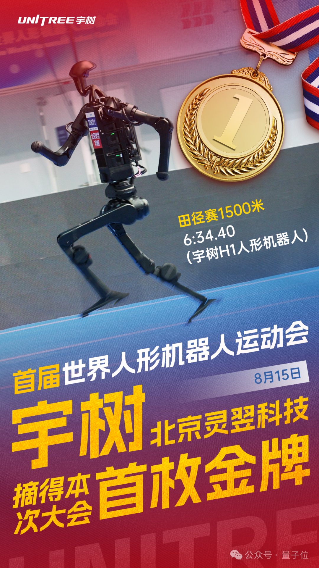 昨天,宇树机器人以6分34秒(人类世界纪录为3分26秒)的成绩取得1500米田径第一名,系本次人形机器人运动会首金,也创造了世界纪录。