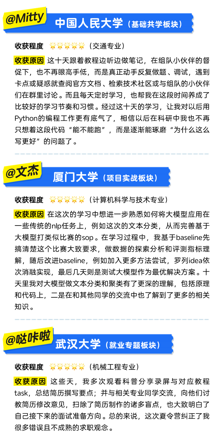 由Datawhale主办,联合头部科技企业的AI夏令营,今夏最后一期来了。依然关注学习者的需求反馈,除了基础共学、项目实战和就业专题板块,新增 AI技能 板块。