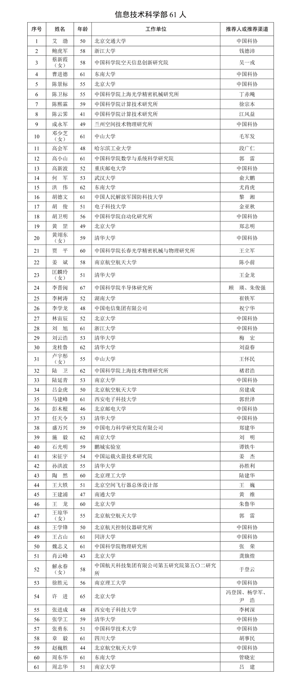 以下为中国科学院“信息技术科学部”、“技术科学部”2025年院士增选有效候选人名单,值得注意的是AI领域大牛,南京大学周志华入选: