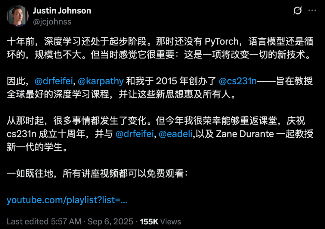 李飞飞主讲的 cs231n 新版课程的视频和材料现已在网上全面发布!上一次公开发布是在 2017 年,距今已有近 8 年时间。