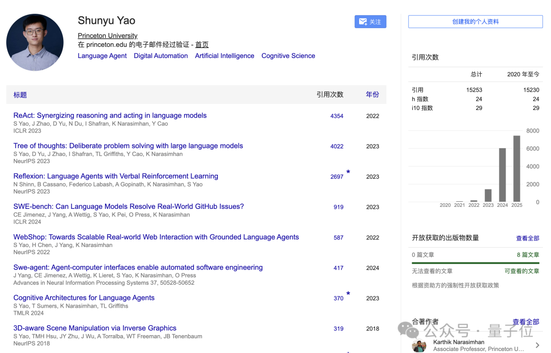 让人颇感惊讶的是,在大三下学期之前,姚顺雨既没有接触过AI,甚至连科研也没有做过。