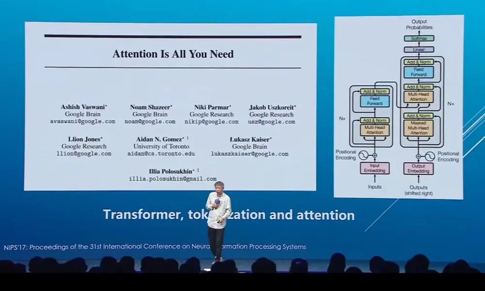 2017年,几位作者提出了Transformer和tokenization,也就是我们今天讲的token。tokenization是一个关键技术,使数据真正资源化,这是里程碑。同样因为这两个东西的出现,当时的数据、模型和算力又叠加了一个更大的变量——规模。所有东西的规模成千上万倍增加,使AI发生了天翻地覆的变化。