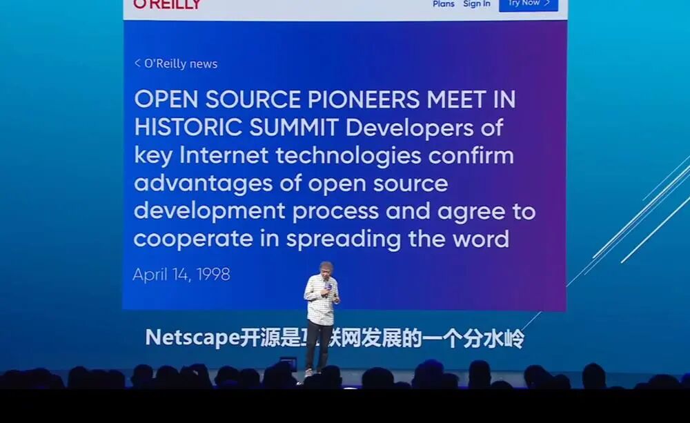 对产业而言,这个变量不是新的。1998年,互联网要兴起的时候,最重要的标志就是浏览器。Netscape(网景)是当时最好最开放,也是改变了格局的浏览器。在互联网时代,Netscape的开源是那个时代的一个分水岭。