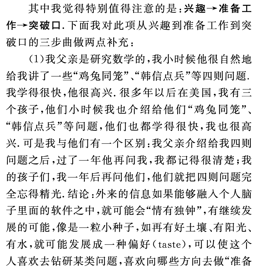 (1)一方面直觉非常重要,可是另一方面又要及时吸取新的观念修正自己的直觉。