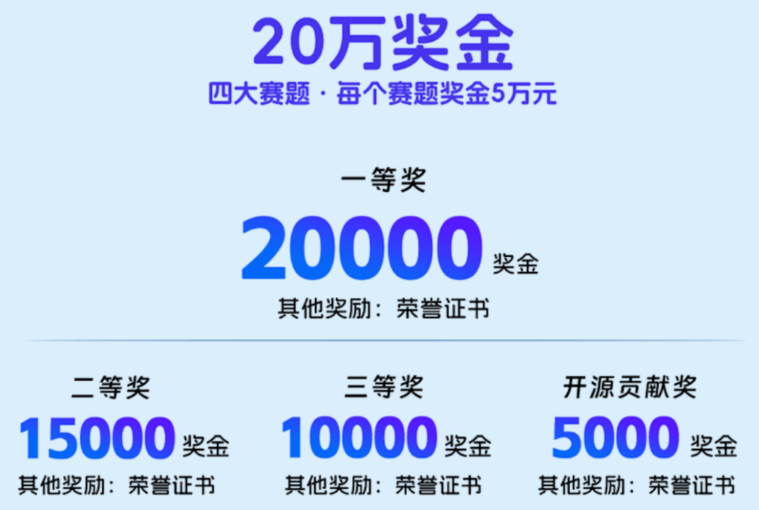 大赛设立奖金池共20万,参赛即可获得100小时免费GPU算力和技术专家小组1v1服务,优秀选手将有机会获得魔搭实习机会。