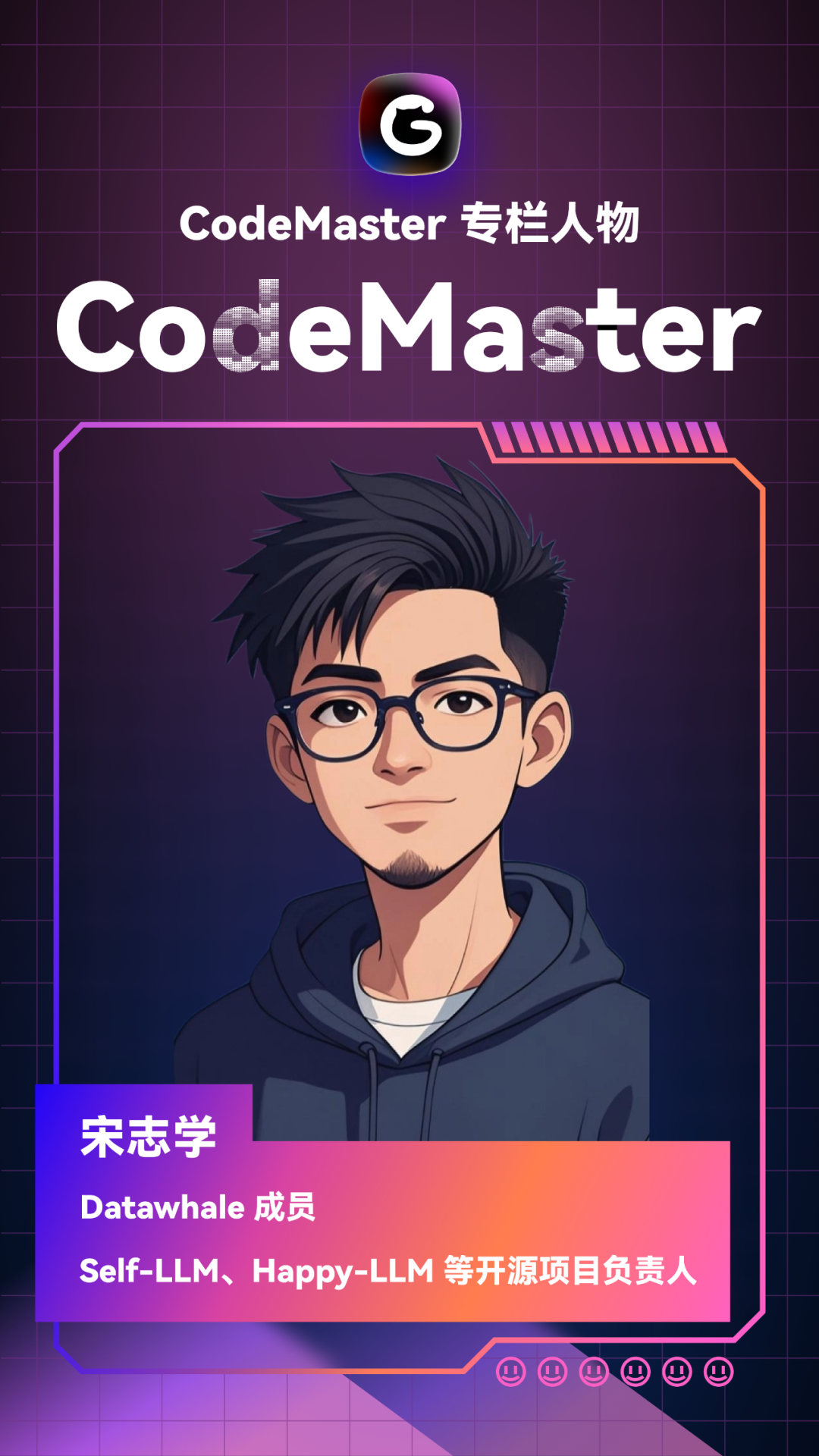 我叫宋志学,目前在 Datawhale 开源社区做一些关于大模型的开源内容,同时在西湖大学张驰老师的 AGI lab 实验室担任科研助理。