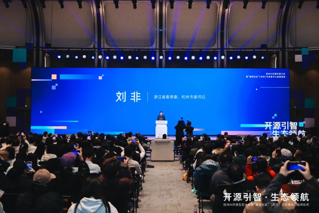 浙江省委常委、杭州市委书记刘非在致辞中提到,“人工智能是新一轮科技革命和产业革命的重要驱动力量,开源是人工智能技术创新的重要加速器。我们期待‘魔搭社区’(杭州)开发者中心成为开源创新的灯塔、全国人才成长的基地,推动更多开源社区的创业火花,在杭州这片沃土上落地、生根、开花、结果。”