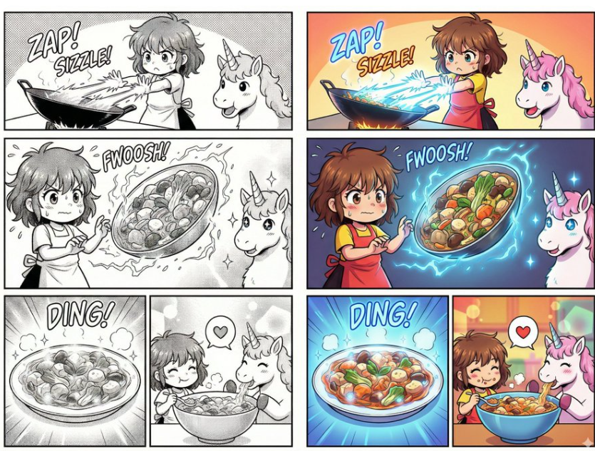 模型擅长通过对话式提示进行复杂编辑。这包括“图像修补”(移除/添加对象)、“修复”(修复老照片)、“上色”(漫画/黑白照片)和“风格转换”。