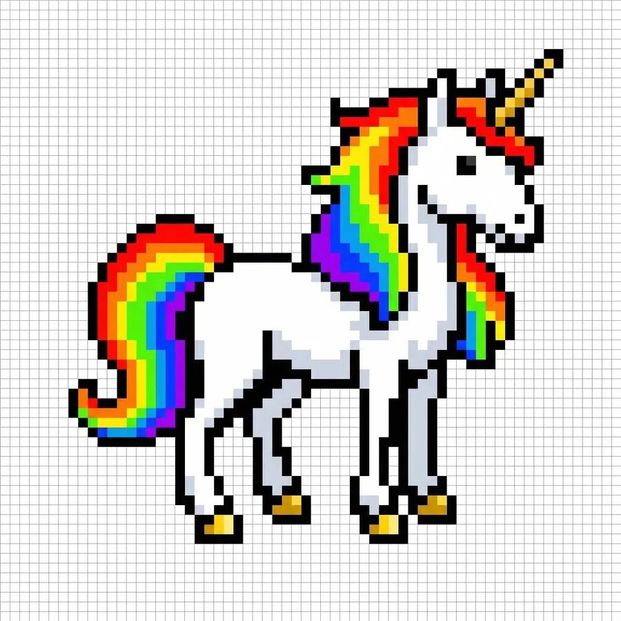 “生成一个适合此 64x64 网格图像的独角兽像素精灵。使用高对比度颜色。”