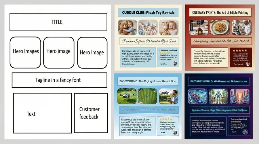 输入图像不限于角色参考或待编辑的主体。你可以用它们来严格控制最终输出的构图和布局。这对于需要将草图、线框图或特定网格布局转化为精美资产的设计师来说是革命性的。