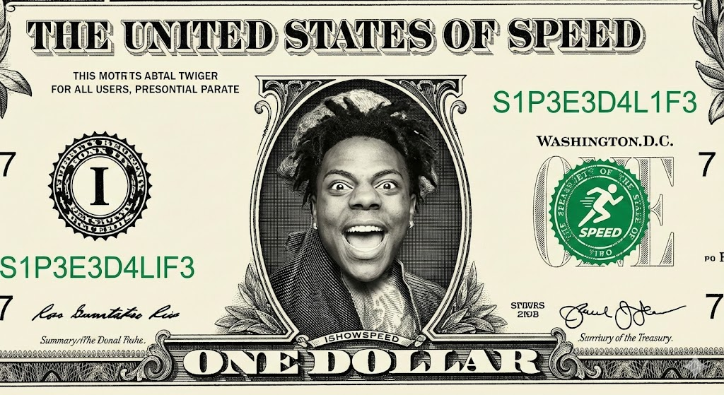 提示词:(@ImagineArt_X)为网红Speed 制作 1 美元钞票