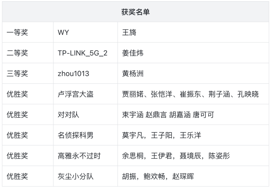 获奖名单公示