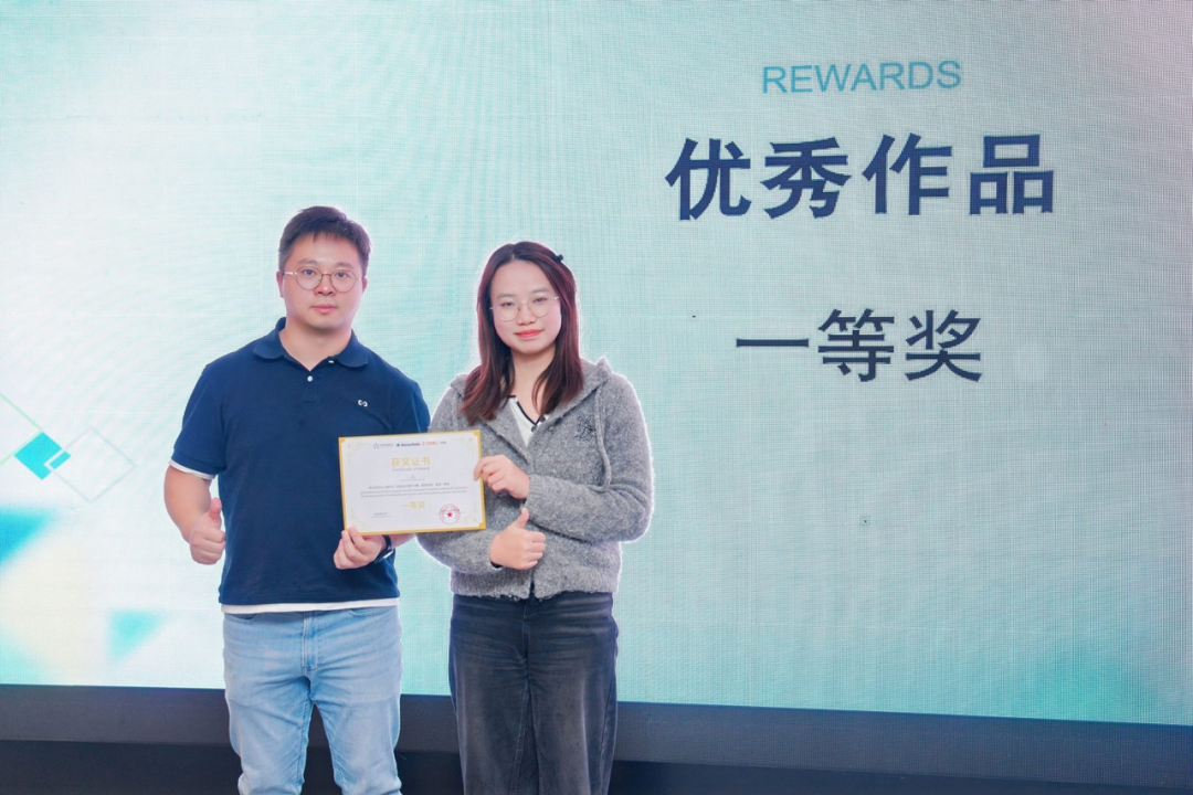 互动抽奖环节为现场增添了欢乐氛围,幸运观众获得了阿里云笔记本NE01一台,与阿里云无影事业部资深产品专家 吴公羽老师共同合影,定格这一充满收获与成长的时刻。
