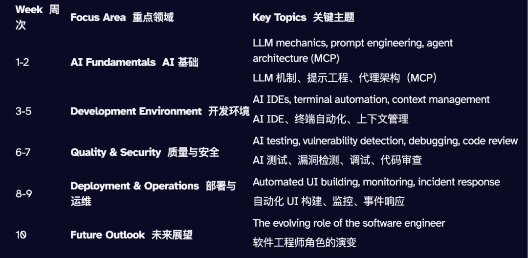 对想系统了解「AI 软件开发」的学习者来说,即便不完整上课,只顺着这些材料读一遍,也能建立起比较成形的框架。