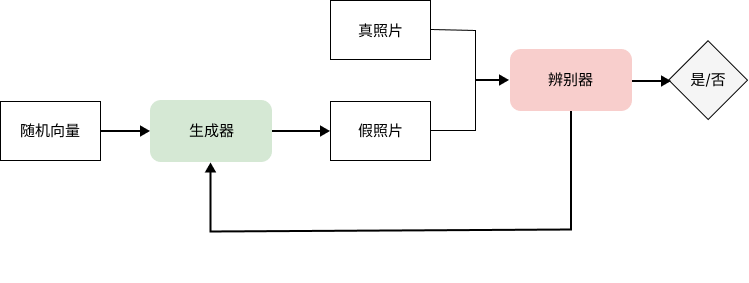 在早期的 AI 绘画时代,大约 2014 年左右,生成对抗网络(GAN)占据了统治地位。那时的 AI 就像是一个处于“左右互搏”状态的偏科天才:它的内部有一个负责造假的“生成器”和一个负责找茬的“判别器”,两者在不断的博弈中进化,通过这种方式训练出一个能够近乎以假乱真的图片生成模型。