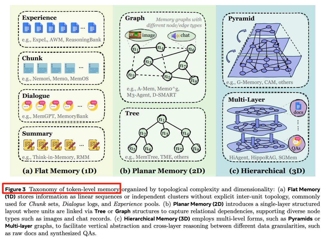 图 3 把 Token-level 再细拆成 1D-Flat / 2D-Planar / 3D-Hierarchical:
