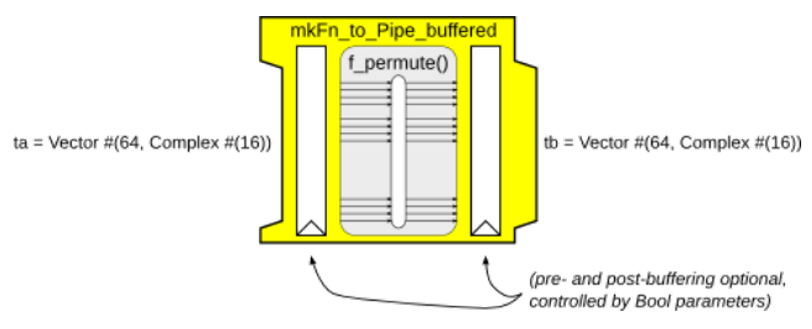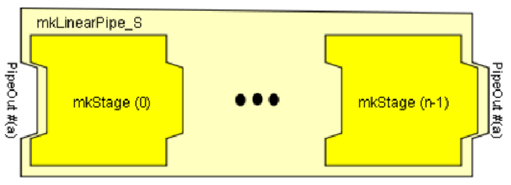 上述PipeOut接口的形式类似于一个FIFO,即为一条数据通道的出口端。Pipe类型本质是一个函数,用来把一个PipeOut类型的输入转换为另一个PipeOut类型的输出模块,因此Pipe类型表示了一个连接并转换的概念。