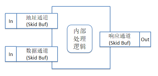如果以数据流的思想来实现,则如上述图6所示,4个环节之间各自独立运行,各司其职,两个输入通道以及一个输出通道是独立模块,各自可以并行的完成自己的握手,模块与模块之间通过Skid Buf(FIFO)进行解耦。可以灵活应对各种握手信号到达的先后顺序,可以写出易于维护且吞吐量高的代码。