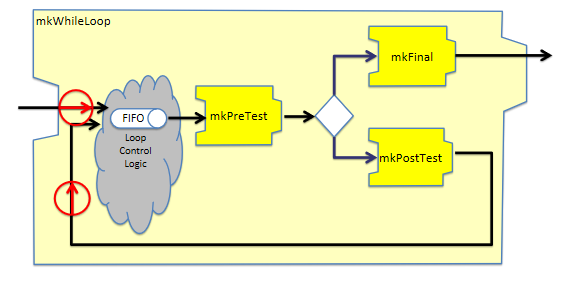 注意,由于mkLoopBody也可能是一个需要多拍才能完成的节点,因此可以有多个数据包同时在流水线中进行循环。