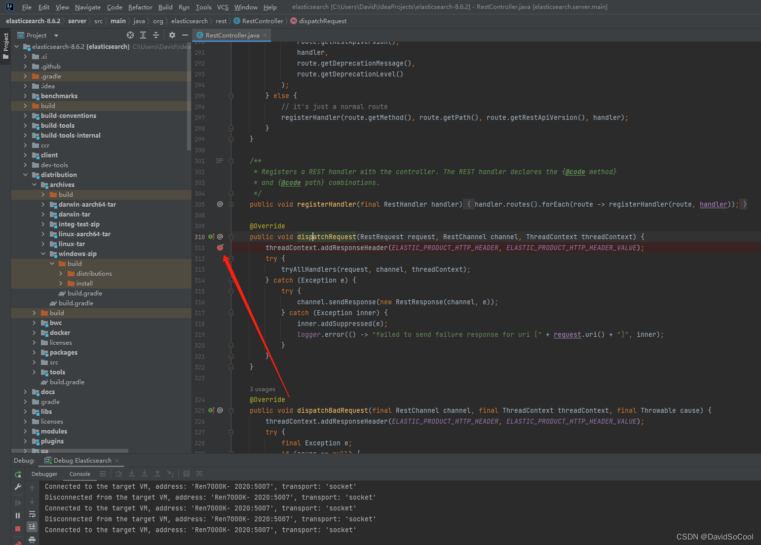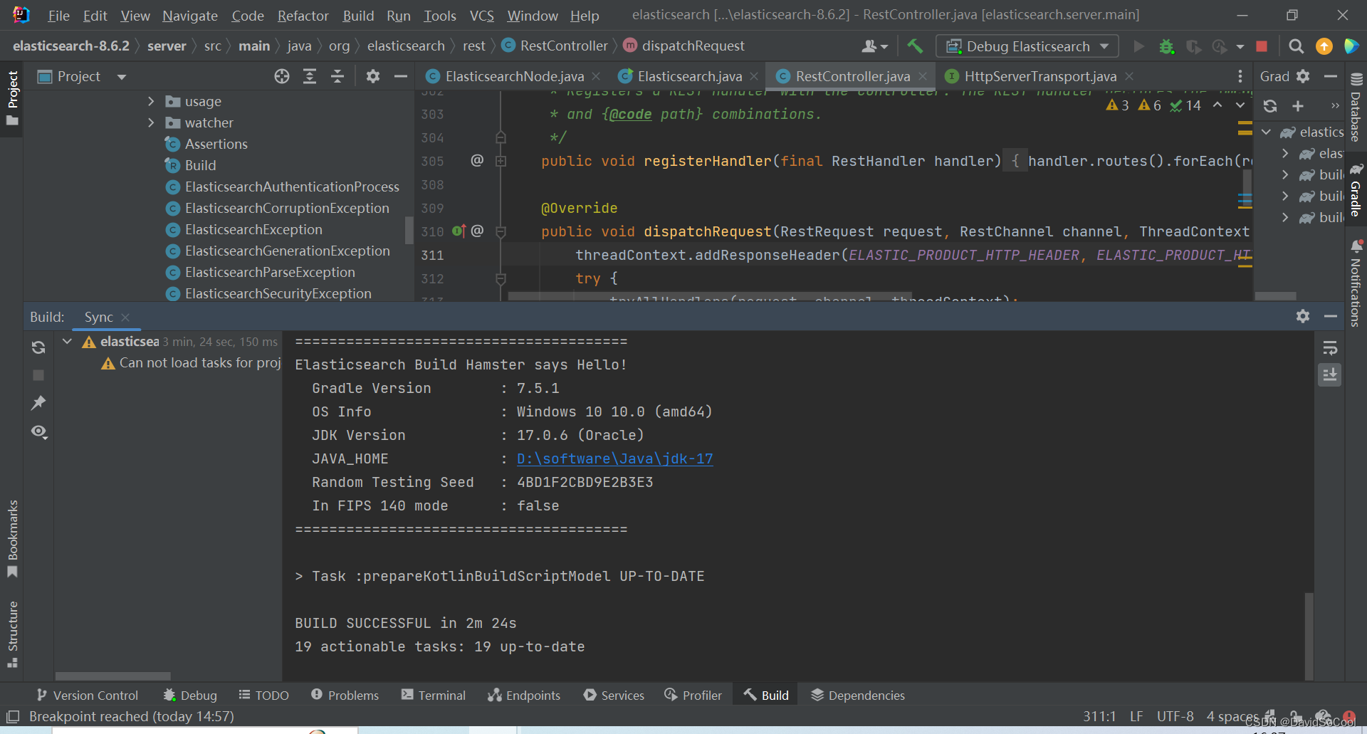 本文介绍了如何配置Gradle使用阿里云镜像,包括在GRADLE_HOME创建init.gradle文件并添加仓库URL。接着,详细说明了下载并解压Elasticsearch源码,使用IntelliJIDEA打开项目,设置Gradle和JDK的过程。此外,还提供了启用和禁用Elasticsearch安全策略的方法,以及如何进行源码的调试,包括在IDEA中设置断点和使用命令行以debug模式启动源码。