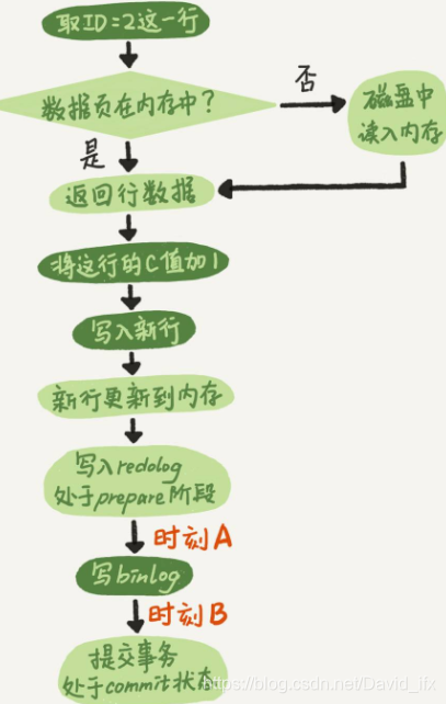 1、在时刻 A 发生宕机,也就是写入 redo log 处于 prepare 阶段之后、写 binlog 之前,发生了崩溃(crash),由于此时 binlog 还没写,redo log 也还没提交,所以崩溃恢复的时候,这个事务会回滚。这时候,binlog 还没写,所以也不会传到备库。
