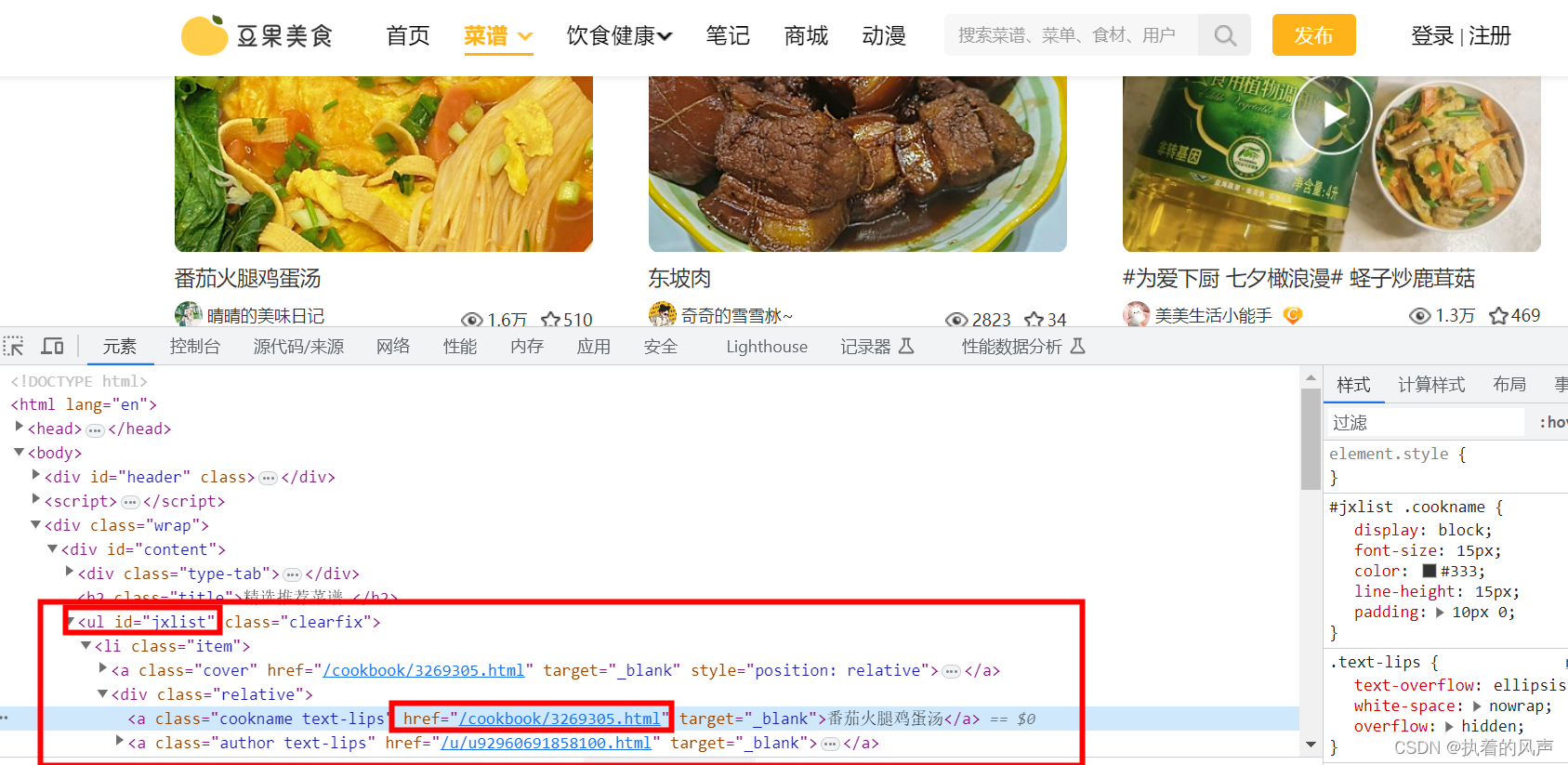 爬取数据网站链接:https://www.douguo.com/jingxuan/0
