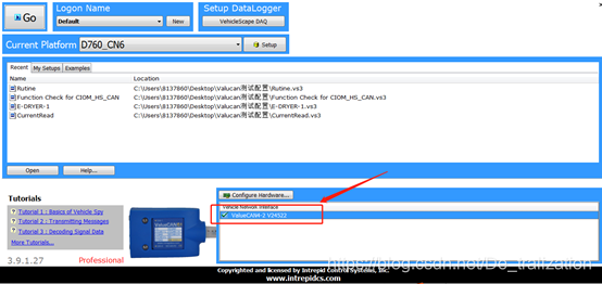 注意: 在选择软件版本时要注意自己手上ValueCan硬件版本,Vehicle Spy 3.7及3.7之前的软件版本支持ValueCan3, Vehicle Spy 3.8 及3.8以上的软件版本支持ValueCan4。