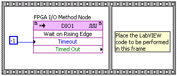 使用FPGA I/O方法节点的等待上升沿(Wait on Rising Edge)方法,可在单个数字输入端等待触发。