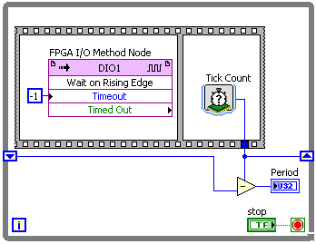 FPGA I/O方法节点可用于测量输入信号的周期,如以下程序框图所示。