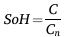 电池老化导致容量(C)随时间波动。健康状态(state of health,SoH)的标准定义是充满电但老化电池的容量与新电池的容量之比,简称为额定容量 Cn。(6)![]()