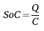 充电电池的特点在于其特定的能量含量,称为充电状态(state of charge,SoC),它表示可充电的总容量的百分比。它描述了可用能量的数量,因此是管理和监控锂离子电池的关键指标。充电状态(SoC)的标准定义是剩余可放电容量(Q)与完全充电电池容量(C)的比率,数值上由公式(5)