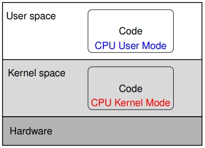 - Kernel and user space 内核和用户空间:内核模式代码比用户模式代码拥有更多的权限