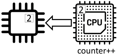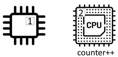 Counter ++不是原子(“atomic”)操作,而是由三个独立的动作组成:
