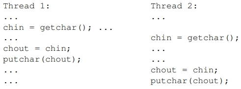 考虑两个进程/线程和以下交错的指令序列(它们确实相互作用):