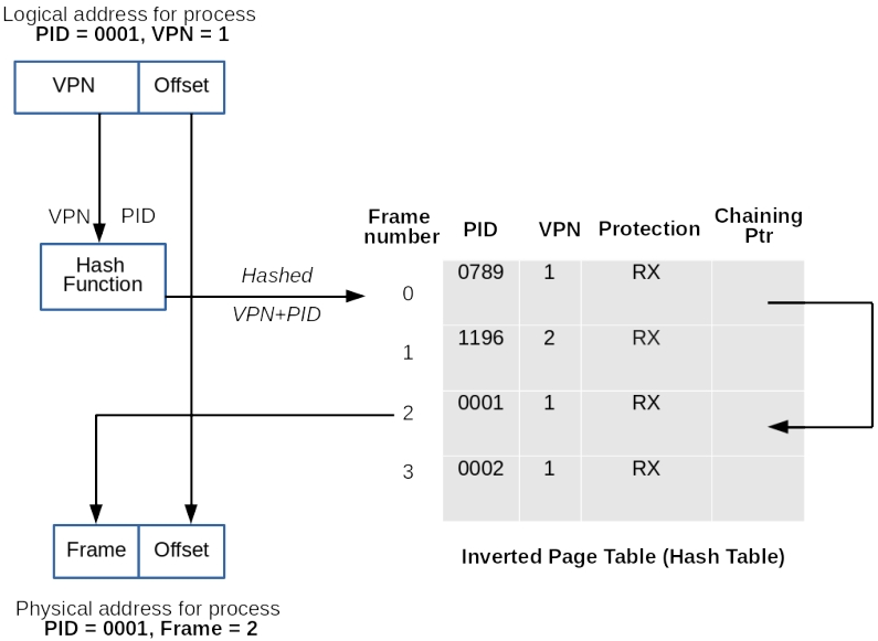 - 通过帧编号/哈希码进行索引(而不是通过页面编号)