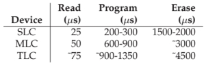 - 读取:均匀快速随机访问任何页面到任何位置(10微秒)