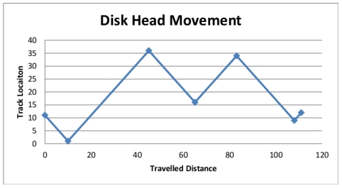 按照这个顺序,磁盘请求进入到磁盘驱动程序的柱面为10、22、20、2、40、6和38。