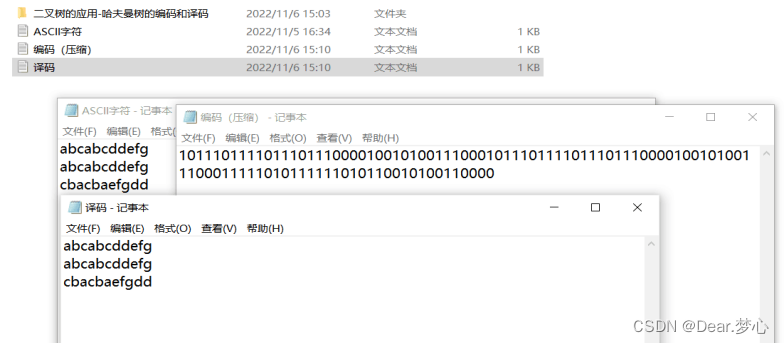 如果你和朋友构造哈夫曼树方法是一样的,构造的哈夫曼树是一样的,那你们是可以完成 0 1 加密通话哟。同时上诉方法只能实现ASCII字符存在的。