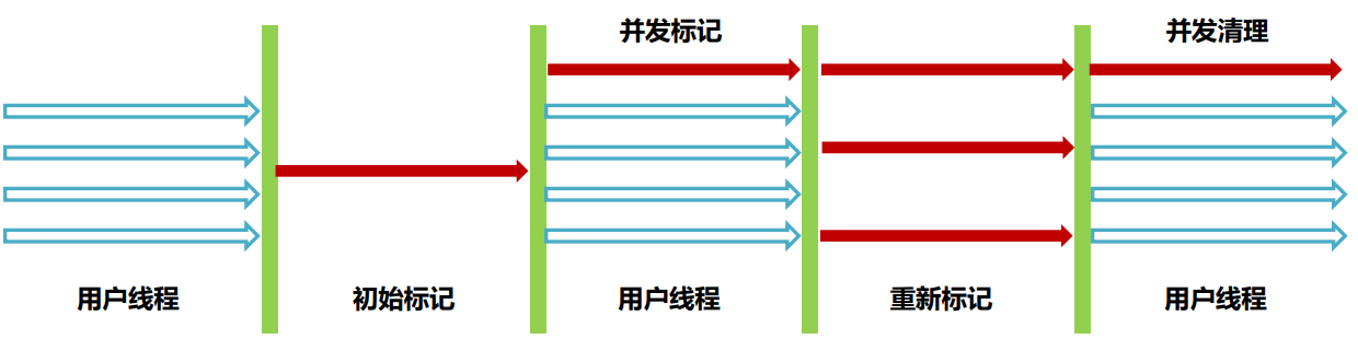 - 并发清理,清理死亡的对象,用户线程不需要暂停。